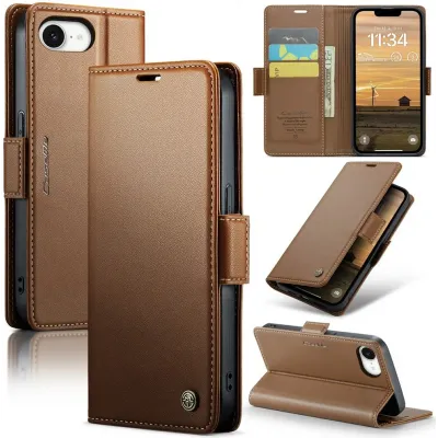 TelefoonhoesjesApple iPhone hoesjesApple iPhone 17e hoesjesCASEME Litchi Texture Book Wallet Case hoesje voor Apple iPhone 17e/16e - Bruin