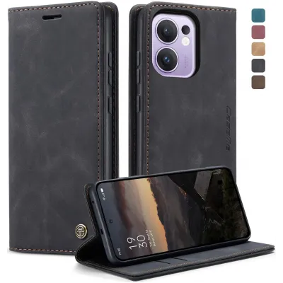 TelefoonhoesjesOppo hoesjesOppo Reno13 FS 5G hoesjesCASEME Retro Texture Book Wallet Case hoesje voor Oppo Reno13 F 4G/5G / Reno13 FS 5G - Zwart