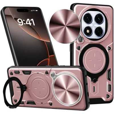 Phonesta IronLock Back Cover hoesje met ring en MagSafe voor Xiaomi Redmi Note 14 Pro 4G/5G/14 Pro Plus / Xiaomi Poco X7 - Rood