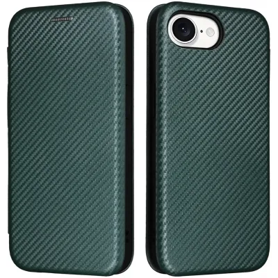• Phonesta Carbon Fiber Skin Book Wallet Case hoesje voor Apple iPhone 17e/16e - Donkergroen