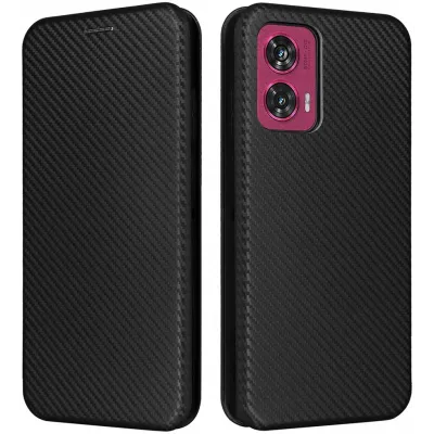 • Phonesta Carbon Fiber Skin Book Wallet Case hoesje voor Motorola Edge 50 Fusion - Zwart