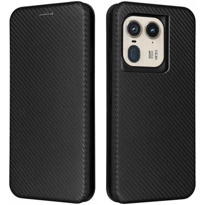 TelefoonhoesjesMotorola hoesjesMotorola Edge 50 Ultra hoesjesPhonesta Carbon Fiber Skin Book Wallet Case hoesje voor Motorola Edge 50 Ultra - Zwart