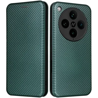 • Phonesta Carbon Fiber Skin Book Wallet Case hoesje voor Oppo Find X8 Pro - Donkergroen