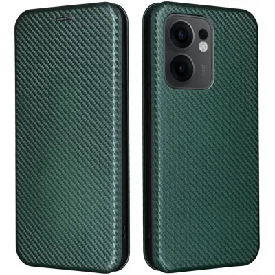 • Phonesta Carbon Fiber Skin Book Wallet Case hoesje voor Oppo Reno13 F 4G/5G / Reno13 FS 5G - Donkergroen