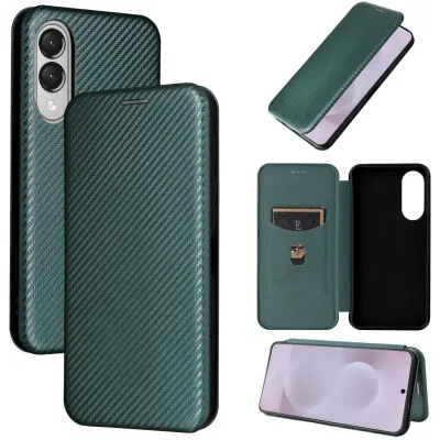 TelefoonhoesjesSamsung Galaxy hoesjesSamsung Galaxy S25 Edge hoesjesPhonesta Carbon Fiber Skin Book Wallet Case hoesje voor Samsung Galaxy S25 Edge - Donkergroen