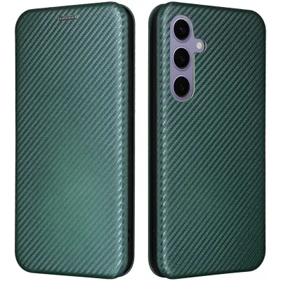 • Phonesta Carbon Fiber Skin Book Wallet Case hoesje voor Samsung Galaxy S25 Plus - Donkergroen