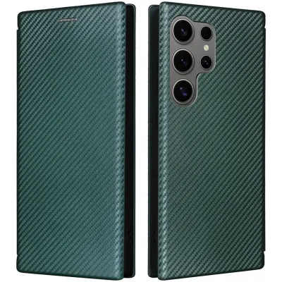 • Phonesta Carbon Fiber Skin Book Wallet Case hoesje voor Samsung Galaxy S25 Ultra - Donkergroen