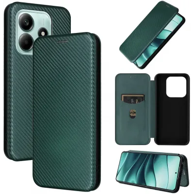 • Phonesta Carbon Fiber Skin Book Wallet Case hoesje voor Xiaomi Redmi Note 14 4G - Donkergroen