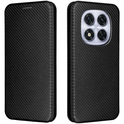 TelefoonhoesjesXiaomi hoesjesXiaomi Redmi Note 14 Pro 4G hoesjesPhonesta Carbon Fiber Skin Book Wallet Case hoesje voor Xiaomi Redmi Note 14 Pro 4G - Zwart