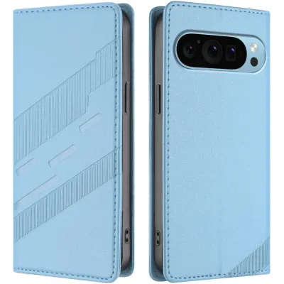 • Phonesta Embossed Lines Book Wallet Case hoesje voor Google Pixel 9 / 9 Pro - Lichtblauw