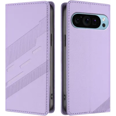 TelefoonhoesjesGoogle hoesjesGoogle Pixel 9 hoesjesPhonesta Embossed Lines Book Wallet Case hoesje voor Google Pixel 9 / 9 Pro - Paars
