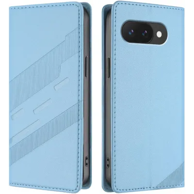 Phonesta Embossed Lines Book Wallet Case hoesje voor Google Pixel 9a - Lichtblauw