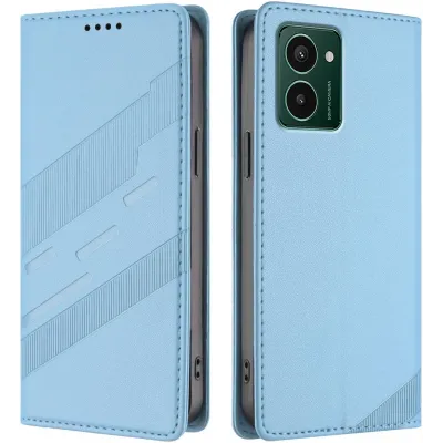• Phonesta Embossed Lines Book Wallet Case hoesje voor HMD Pulse/Pulse Plus/Pulse Pro - Lichtblauw