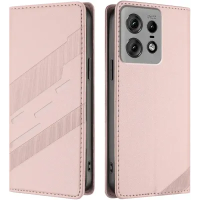 • Phonesta Embossed Lines Book Wallet Case hoesje voor Motorola Edge 50 Pro - Roze