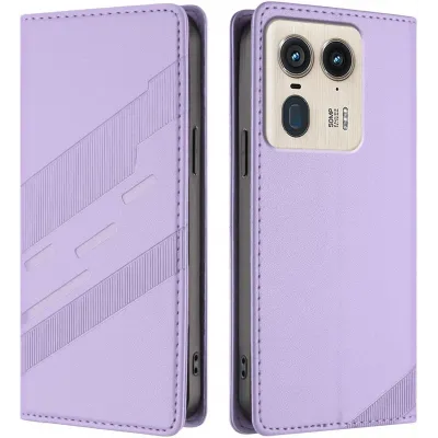 TelefoonhoesjesMotorola hoesjesMotorola Edge 50 Ultra hoesjesPhonesta Embossed Lines Book Wallet Case hoesje voor Motorola Edge 50 Ultra - Paars