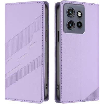 TelefoonhoesjesMotorola hoesjesMotorola Edge 60 Neo hoesjesPhonesta Embossed Lines Book Wallet Case hoesje voor Motorola Edge 60 Neo/Edge 50 Neo / ThinkPhone 25 - Paars
