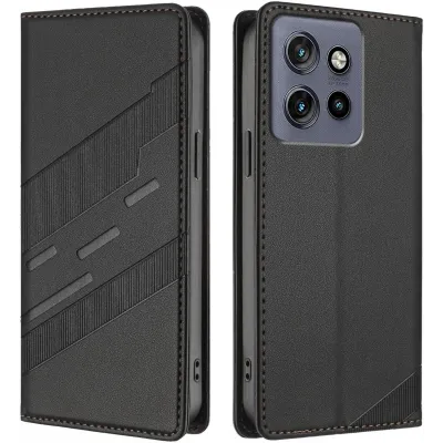 • Phonesta Embossed Lines Book Wallet Case hoesje voor Motorola Edge 60 Neo/Edge 50 Neo / ThinkPhone 25 - Zwart