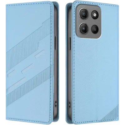 • Phonesta Embossed Lines Book Wallet Case hoesje voor Motorola Moto G17/G17 Power/G15/G15 Power - Lichtblauw