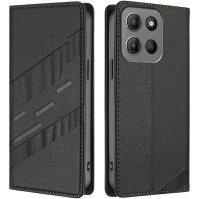 • Phonesta Embossed Lines Book Wallet Case hoesje voor Motorola Moto G17/G17 Power/G15/G15 Power - Zwart