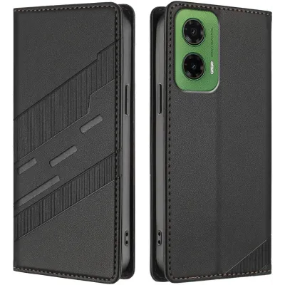 Phonesta Embossed Lines Book Wallet Case hoesje voor Motorola Moto G35 - Zwart