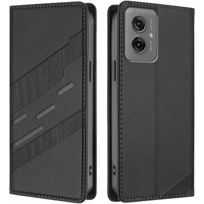 Phonesta Embossed Lines Book Wallet Case hoesje voor Motorola Moto G55 - Zwart