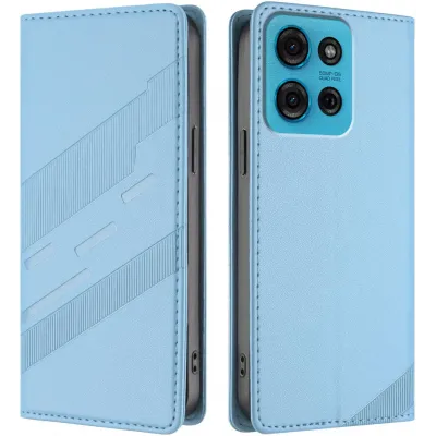 • Phonesta Embossed Lines Book Wallet Case hoesje voor Motorola Moto G75 - Lichtblauw