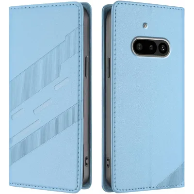 • Phonesta Embossed Lines Book Wallet Case hoesje voor Nothing Phone (3a) - Lichtblauw
