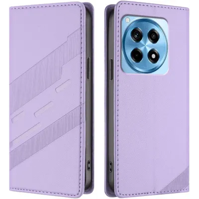 Phonesta Embossed Lines Book Wallet Case hoesje voor OnePlus 12R - Paars