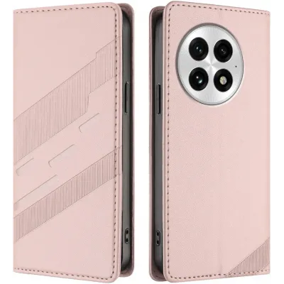 • Phonesta Embossed Lines Book Wallet Case hoesje voor OnePlus 13 - Roze