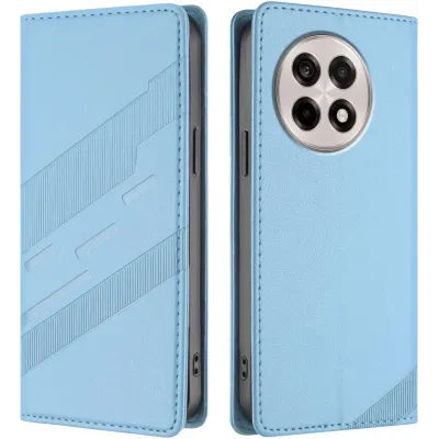 • Phonesta Embossed Lines Book Wallet Case hoesje voor OnePlus 13R - Lichtblauw