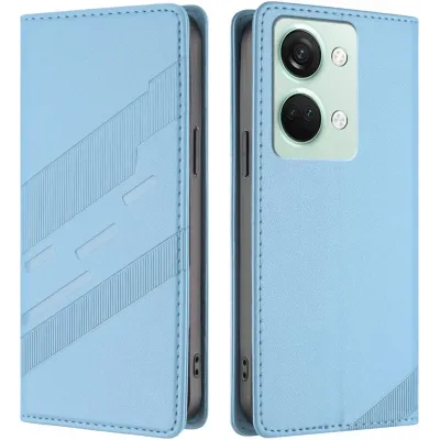 Phonesta Embossed Lines Book Wallet Case hoesje voor OnePlus Nord 3 - Lichtblauw