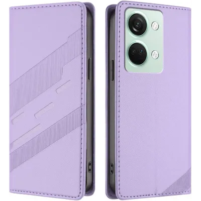 Phonesta Embossed Lines Book Wallet Case hoesje voor OnePlus Nord 3 - Paars