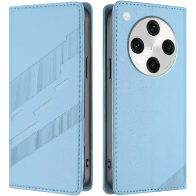 • Phonesta Embossed Lines Book Wallet Case hoesje voor Oppo Find X8 Pro - Lichtblauw