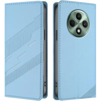 • Phonesta Embossed Lines Book Wallet Case hoesje voor Oppo Reno12 F/Reno12 FS - Lichtblauw