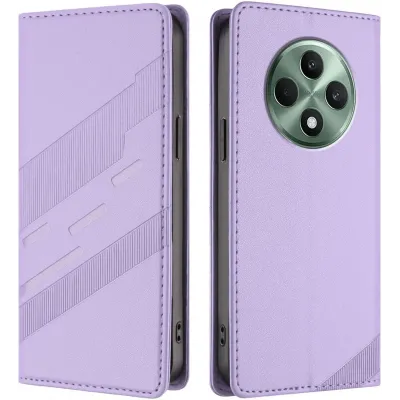• Phonesta Embossed Lines Book Wallet Case hoesje voor Oppo Reno12 F/Reno12 FS - Paars