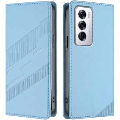 • Phonesta Embossed Lines Book Wallet Case hoesje voor Oppo Reno12 - Lichtblauw