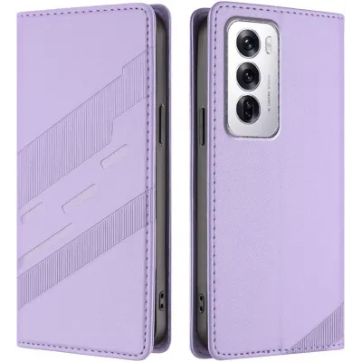 Phonesta Embossed Lines Book Wallet Case hoesje voor Oppo Reno12 - Paars