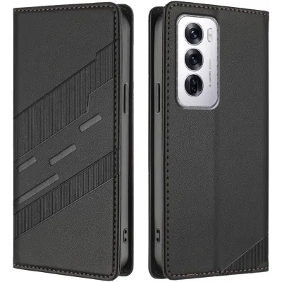 • Phonesta Embossed Lines Book Wallet Case hoesje voor Oppo Reno12 - Zwart