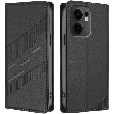 • Phonesta Embossed Lines Book Wallet Case hoesje voor Oppo Reno13 F 4G/5G / Reno13 FS 5G - Zwart