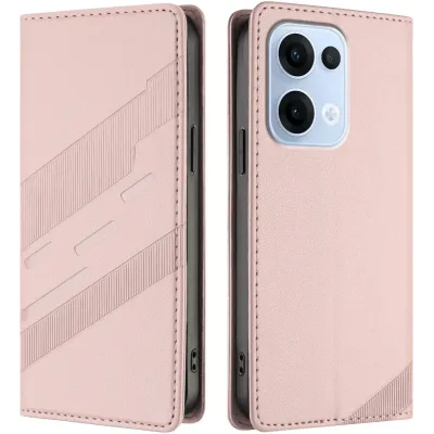 Phonesta Embossed Lines Book Wallet Case hoesje voor Oppo Reno13 - Roze