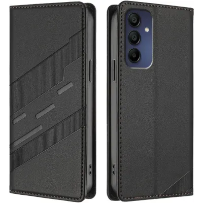 TelefoonhoesjesSamsung Galaxy hoesjesSamsung Galaxy A16 hoesjesPhonesta Embossed Lines Book Wallet Case hoesje voor Samsung Galaxy A16 - Zwart