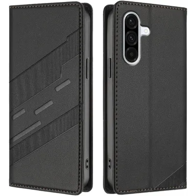 TelefoonhoesjesSamsung Galaxy hoesjesSamsung Galaxy A36 hoesjesPhonesta Embossed Lines Book Wallet Case hoesje voor Samsung Galaxy A36 - Zwart