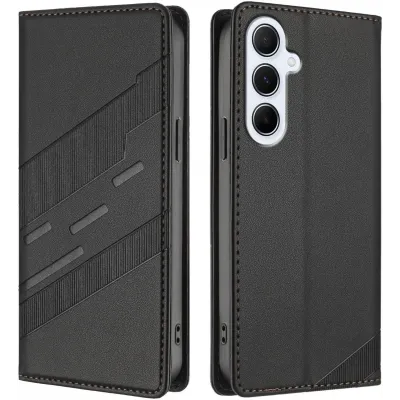 • Phonesta Embossed Lines Book Wallet Case hoesje voor Samsung Galaxy A56 - Zwart