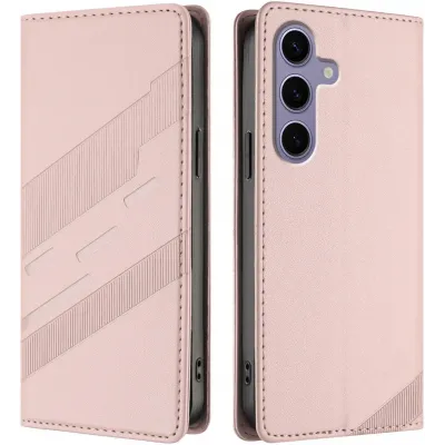 • Phonesta Embossed Lines Book Wallet Case hoesje voor Samsung Galaxy S24 FE - Roze