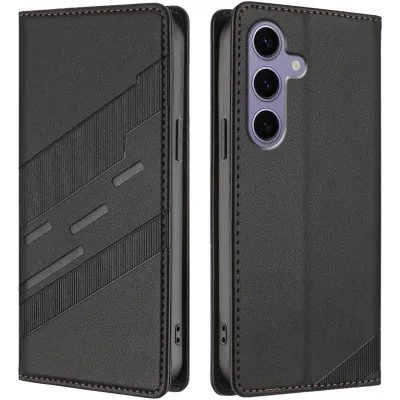 • Phonesta Embossed Lines Book Wallet Case hoesje voor Samsung Galaxy S24 FE - Zwart