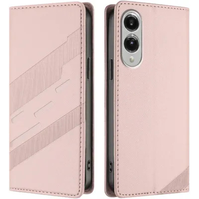 • Phonesta Embossed Lines Book Wallet Case hoesje voor Samsung Galaxy S25 Edge - Roze