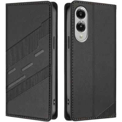 • Phonesta Embossed Lines Book Wallet Case hoesje voor Samsung Galaxy S25 Edge - Zwart