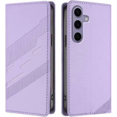 • Phonesta Embossed Lines Book Wallet Case hoesje voor Samsung Galaxy S25 - Paars