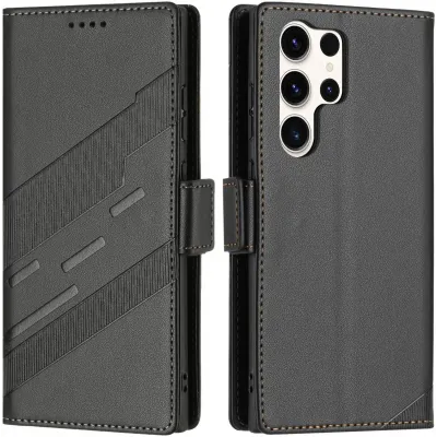 Phonesta Leather Vertical Flip Wallet Case hoesje voor Samsung Galaxy S25 Ultra - Zwart