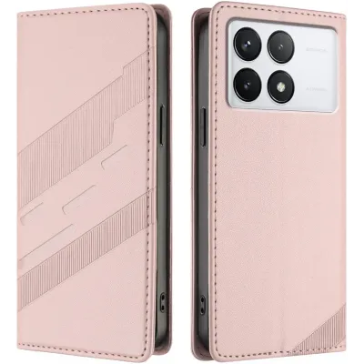 Phonesta Embossed Lines Book Wallet Case hoesje voor Xiaomi 14T - Roze